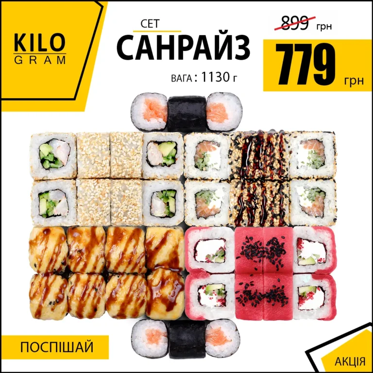 Обожнюєш суші сети так як ми? Люби їх ще більше💪 Тому що при замовленні понад 650 грн KILOGRAM pizza&sushi здійснить безкоштовну доставку😍